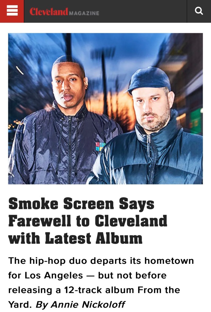 From The Yard is the 4th Full Length Album from Cleveland Alternative Hip Hop duo Smoke Screen. The overall theme of the album is primarily centered on their upcoming move from Cleveland to Los Angeles (‘Make That Move’, ‘New Mug, New Pot’, ‘This Is Not A Test’) but there are also plenty of other topics covered in the album.